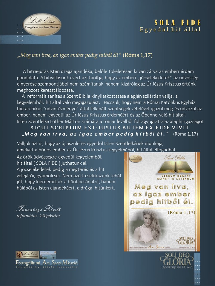 SOLA FIDE = EGYEDÜL HIT ÁLTAL